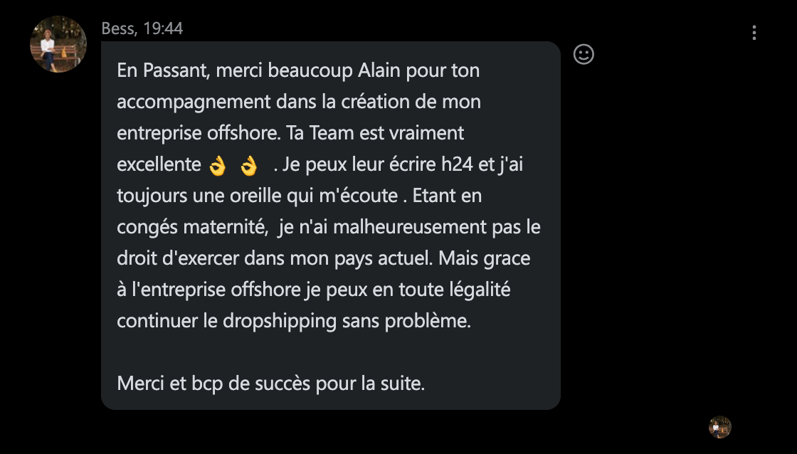 Nous avons déjà aidé des dizaines d'étudiants en dropshipping à créer leur société offshore et à bénéficier des mêmes avantages que ceux qui vivent en Europe ou en Amérique du Nord.